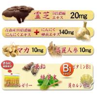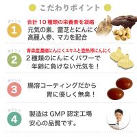 ● 【主要成分/1粒あたり】にんにく卵黄エキス100mg、にんにく濃縮エキス40mg、霊芝末20mg、ローヤルゼリー20mg、マカ10mg、高麗人参エキス10mg、緑茶10mg、亜鉛酵母10mg、VB1 5mg