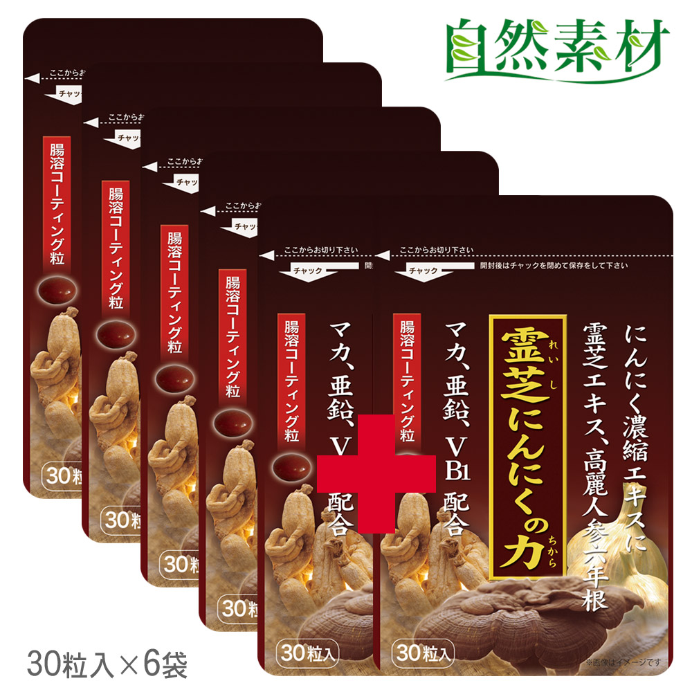 にんにく卵黄 サプリ ニンニクサプリ 霊芝にんにくの力 30粒入り 6袋(180日分) サプリメント 霊芝 高麗人参 マカ