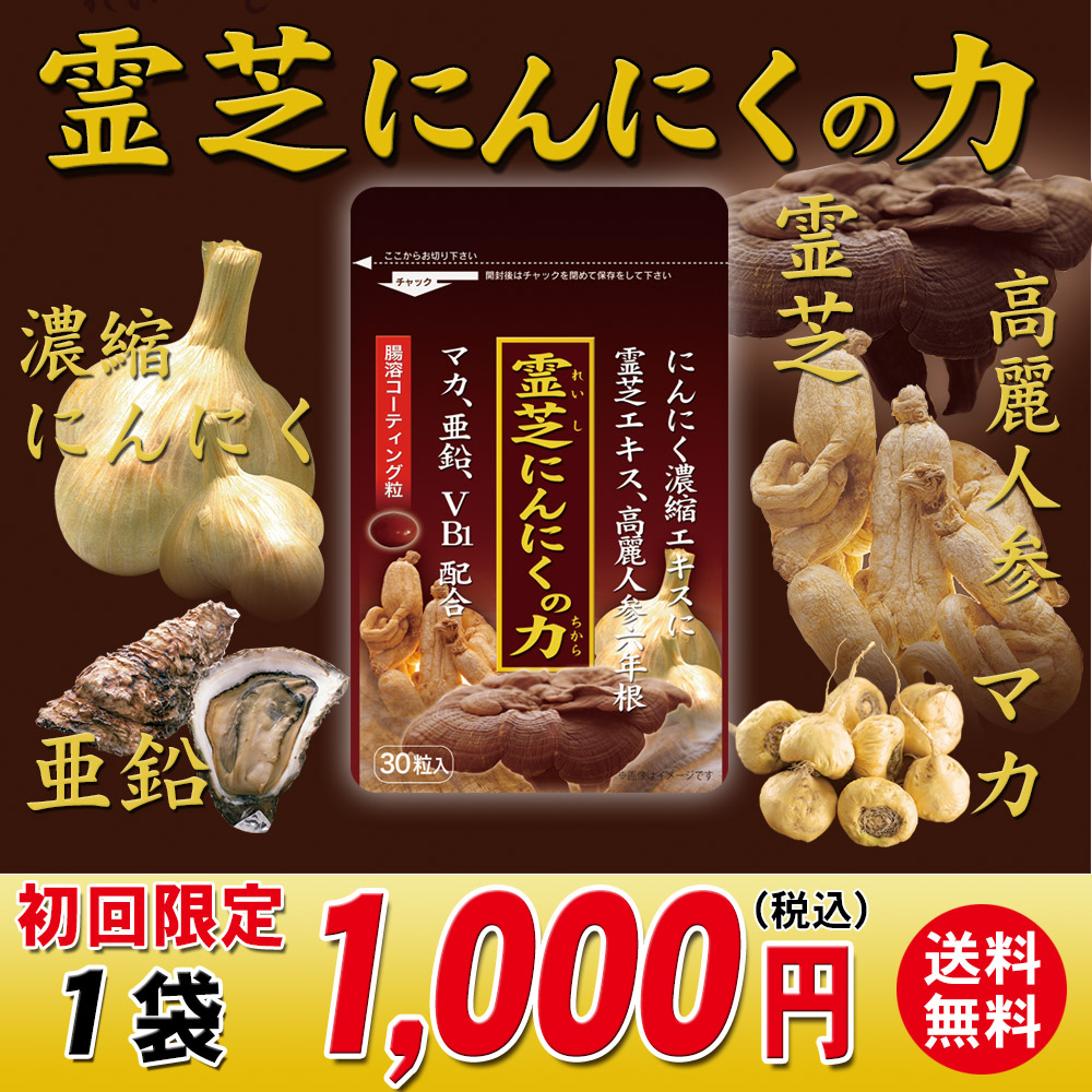 にんにく卵黄 サプリ ニンニクサプリ 霊芝にんにくの力 初回限定1000円 2袋まで サプリメント 霊芝 高麗人参 マカ 30粒入 (約1ケ月分)