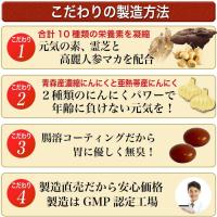 ● 【主要成分】にんにく卵黄エキス100mg、にんにく濃縮エキス40mg、霊芝末20mg、ローヤルゼリー20mg、マカ10mg、高麗人参エキス10mg、緑茶10mg、亜鉛酵母10mg、VB1 5mg
