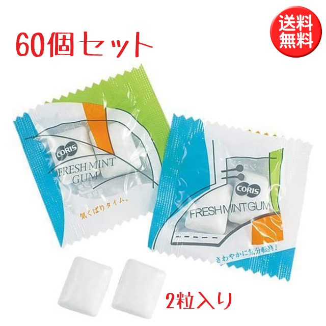 コリス フレッシュミントガム 60個 (1包に2粒入りx 60個) 人工甘味料不使用 キシリトール不使用 1000円ポッキリ