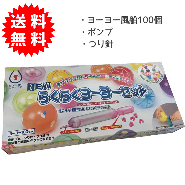 らくらくヨーヨーセット(ヨーヨー風船100個、らくらくポンプ、しばらずパッチン、糸ゴム、つり針、つり紙) 鈴木ラテックス 日本製 ヨーヨー釣り 水ヨーヨー