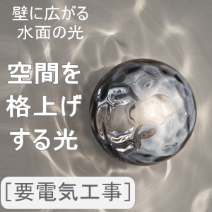 商品説明 | 壁に広がる上品な光で 空間をワンランク上の印象に 玄関・廊下・トイレにおすすめの AQUAブラケットライト ・スモークグレーガラス ・白熱灯40W相当 ・電球色 ・要電気工事 |