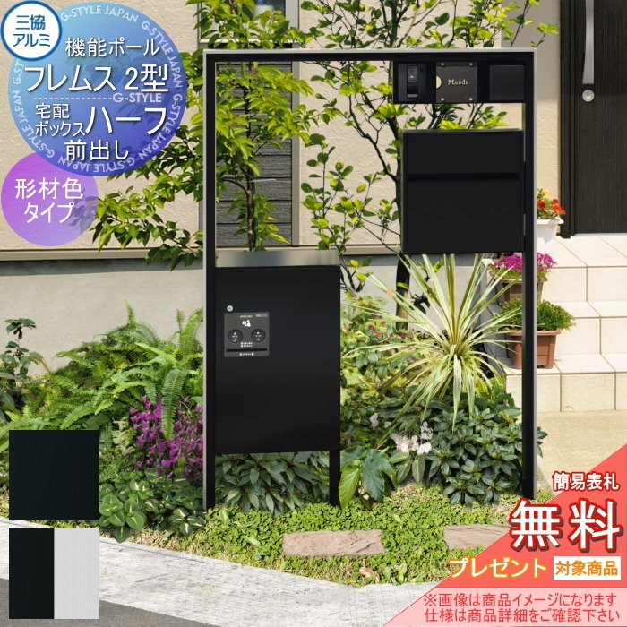 商品名 | 三協アルミ 機能ポール フレムス クラシック 2型 形材色タイプ 照明 PE1型+宅配ボックス ハーフ(前出し) |