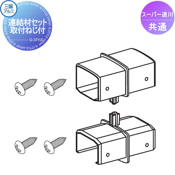三協アルミ 三協立山 スーパー速川用 全高さ共通 フェンス連結材(上下各1個ビス付き) FIN-J 770円 | 三協アルミ 三協立山 スーパー速川用 全高さ共通 押え金具(ビス付) HOGC0589 1,210円 |