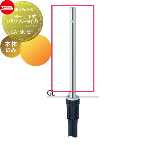 商品名 | 車止めポール【リフター φ48.6 ステンレス製 上下式( バリアフリータイプ) カギ付(南京錠25mm) LA-5K-BF】 車庫まわり 駐車場 ガレージ 車止め カーストッパー |