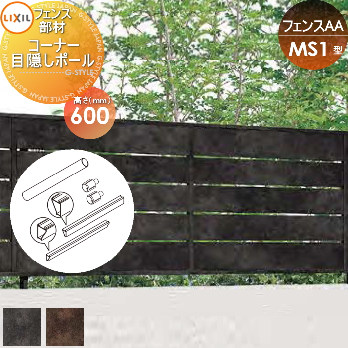商品名 | フェンスAA MS1型用 【H600 コーナー目隠しポール】 |