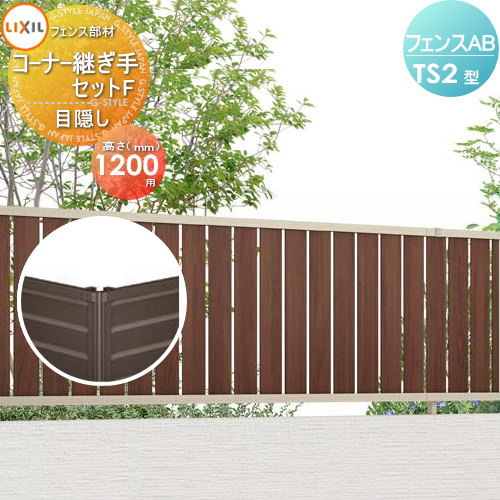 商品名 | フェンスAB TS2型用【H1200 目隠しコーナー継手セットF ポール付 木調色用】 境界 屋外 アルミ 形材フェンスガーデン DIY 塀 壁 囲い |