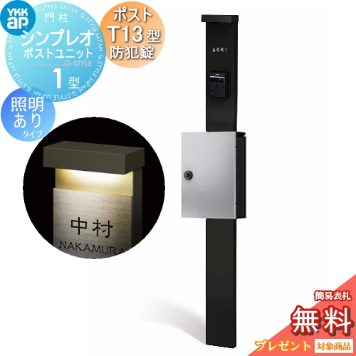 商品名 | シンプレオポストユニット1型 HMB-1 照明あり(24V)タイプ ポストT13型(防犯錠付) 上入れ前出し 機能門柱 機能ポール 一戸建て用 屋外 一体型セット |