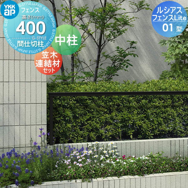 商品名 | ルシアス Lite【01型用間仕切柱 中柱1型 T40 H400 笠木連結材付き】 境界 屋外 アルミ 形材フェンスガーデン DIY 塀 壁 囲い |