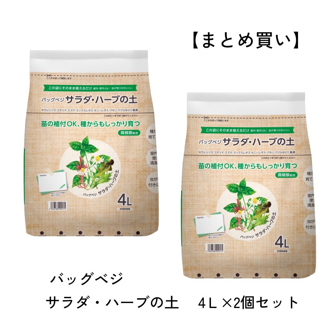 ≪2個セット≫ バッグベジ サラダ・ハーブの土 4L×2個 袋栽培 野菜 サラダ