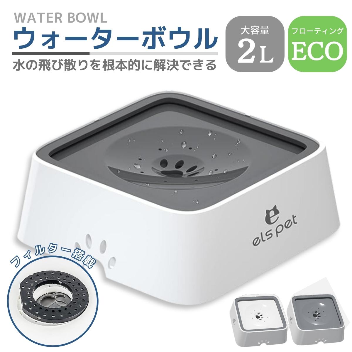 犬 水飲み器 給水器 2L 水入れ 猫 フィルター付き ペット ウォーターボウル フードボウル 両用 フローティング おしゃれ シンプル 飛び散り防止