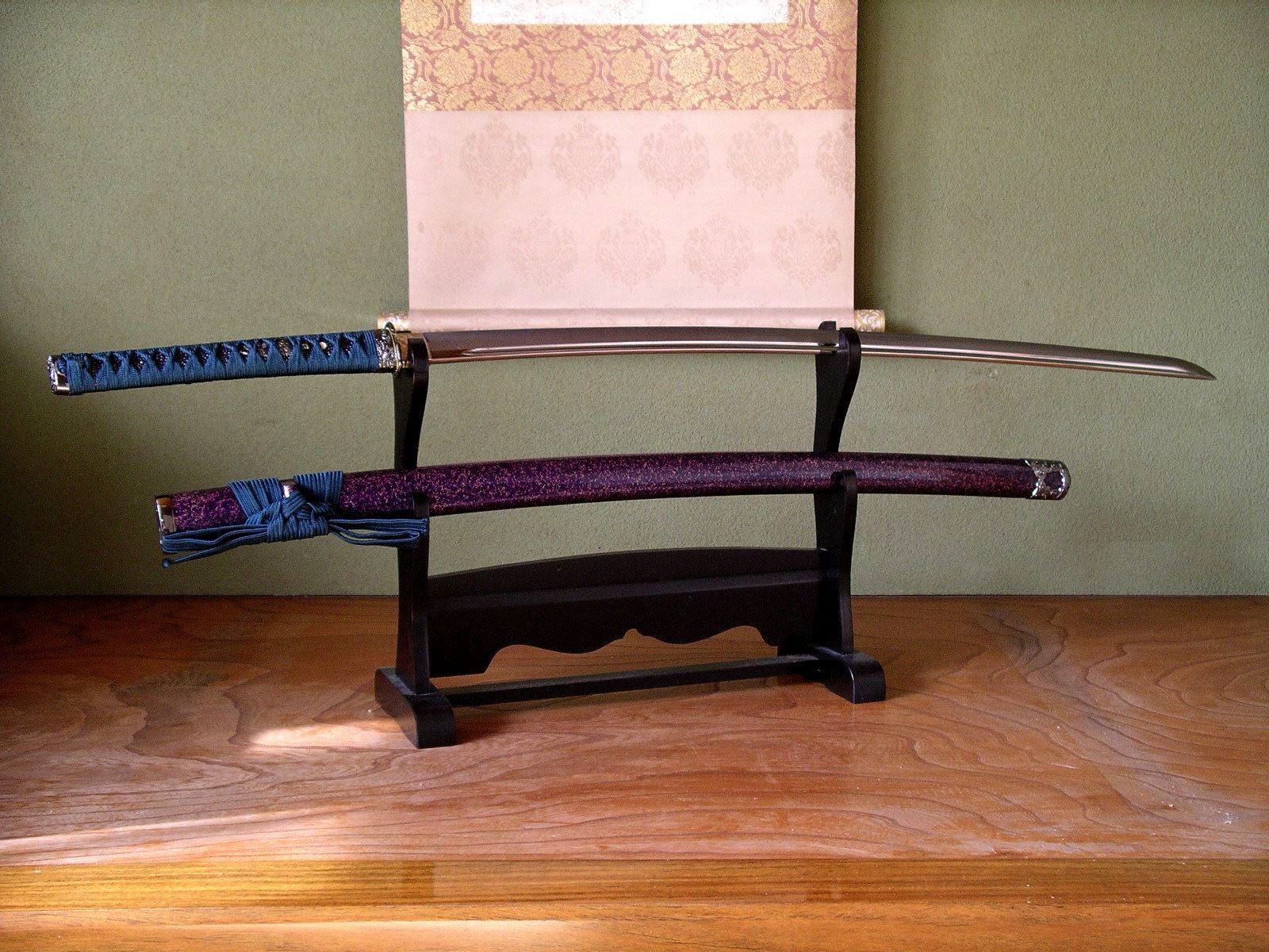 鞘:木製 紫梨地仕上げ 半太刀仕様 鐺金具