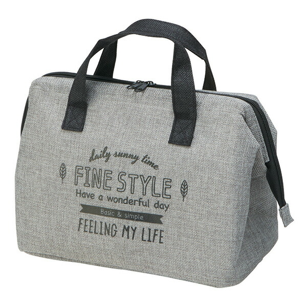 がま口型 保冷ランチバッグ【L】〔麻風タイプ〕●ファインスタイル ブラック●//ランチバッグ 手提げバッグ かばん お出かけ サブバッグ アルミ蒸着バッグ お弁当バッグ メンズランチ
