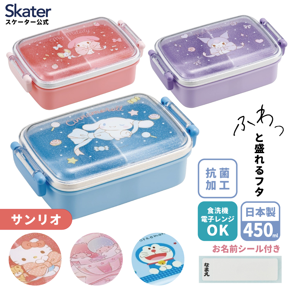 スケーター お弁当箱 子供用 450ml 食洗機対応 日本製 抗菌 おかずがつぶれにくいドーム型ふた 男の子 女の子 skater RBF3ANAGサンリオ
