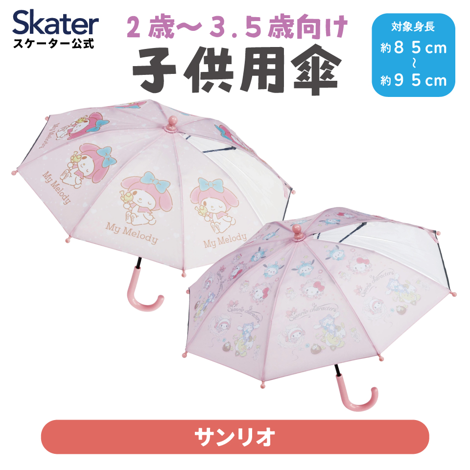 子供 傘 35cm 手開き 透明窓付 2歳 3歳 スケーター UB0 キャラクター 子供用 レイングッズ サンリオ