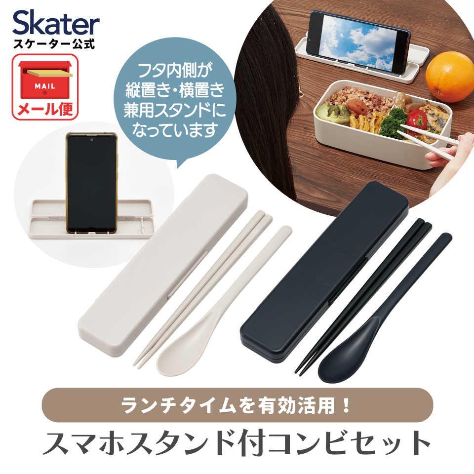 スケーター スマホスタンド付き お箸 スプーン セット 食洗器対応 カトラリー お弁当 skater CCS3SASS ベージュ 色 無地