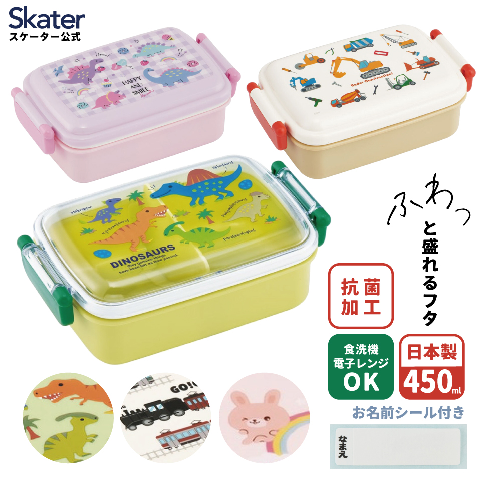 スケーター お弁当箱 子供用 450ml 食洗機対応 日本製 抗菌 おかずがつぶれにくいドーム型ふた 男の子 女の子 skater RBF3ANAG恐竜 はたらくクルマ TRAIN 電車