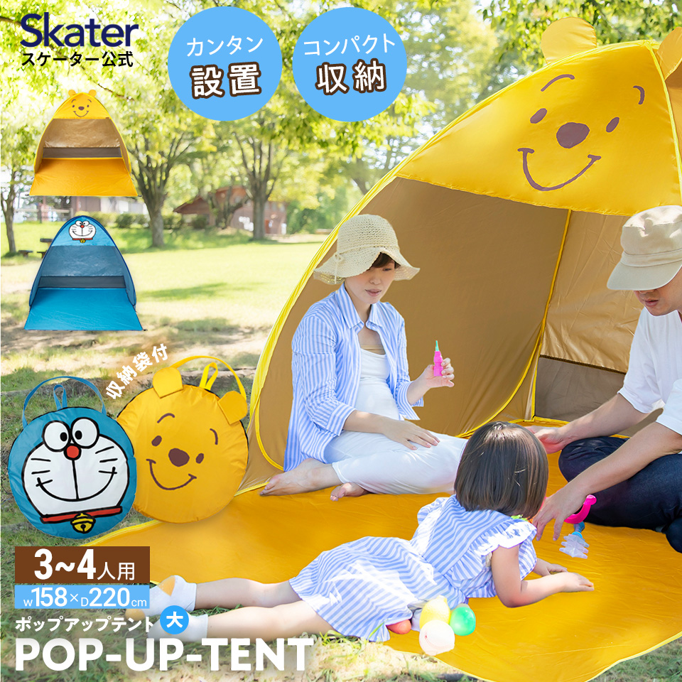 ポップアップテント 大 3人 4人 ポップアップ テント ワンタッチ 簡単 キャンプ かわいい 大きめ キャラクター プーさん ドラえもん skater スケーター OPT2