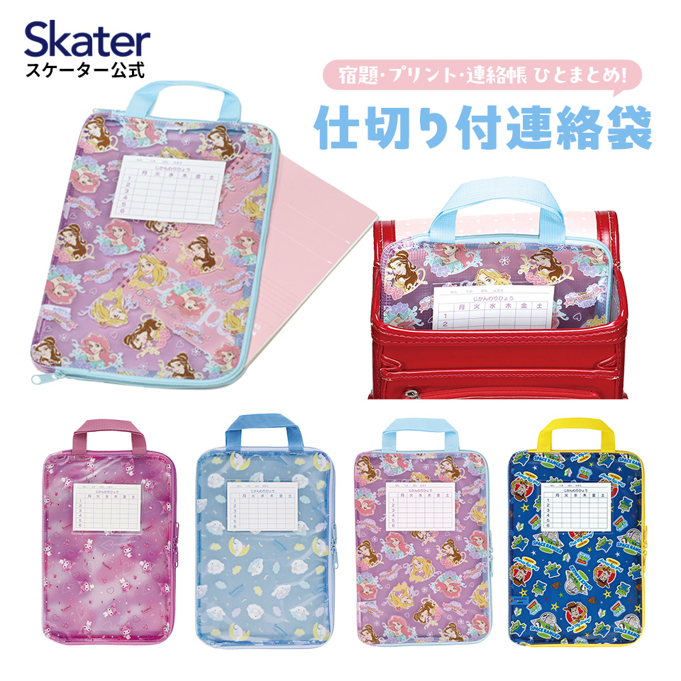 仕切り付き 連絡袋 A4 ファスナー 小学校 名前 時間割 連絡帳袋 キャラクター skater スケーター ZRF1 プリンセス トイストーリー 男の子 女の子
