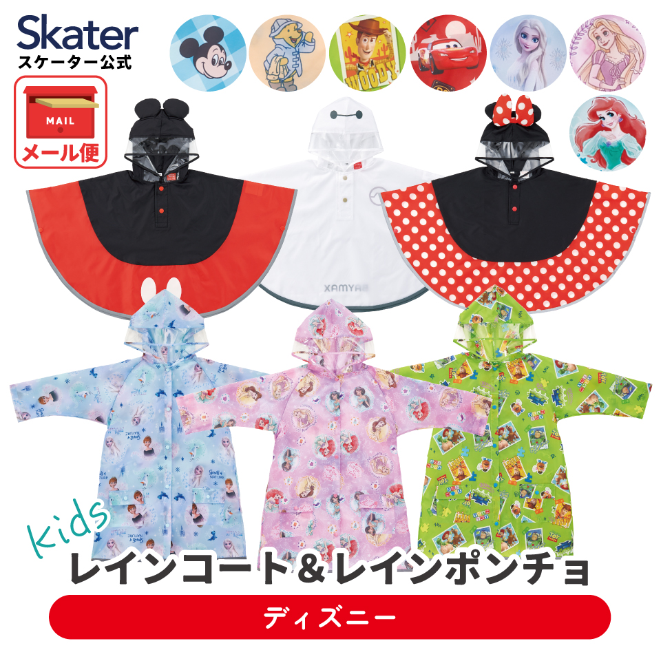 スケーター レインコート ポンチョ カッパ キッズ 子供 通学 通園 フード レインウェア キャラクター skater ミッキー プーさん ベイマックス ディズニー