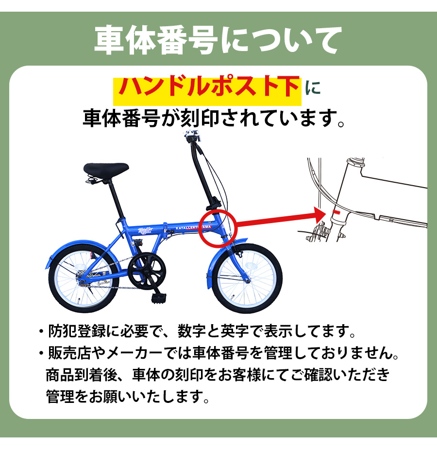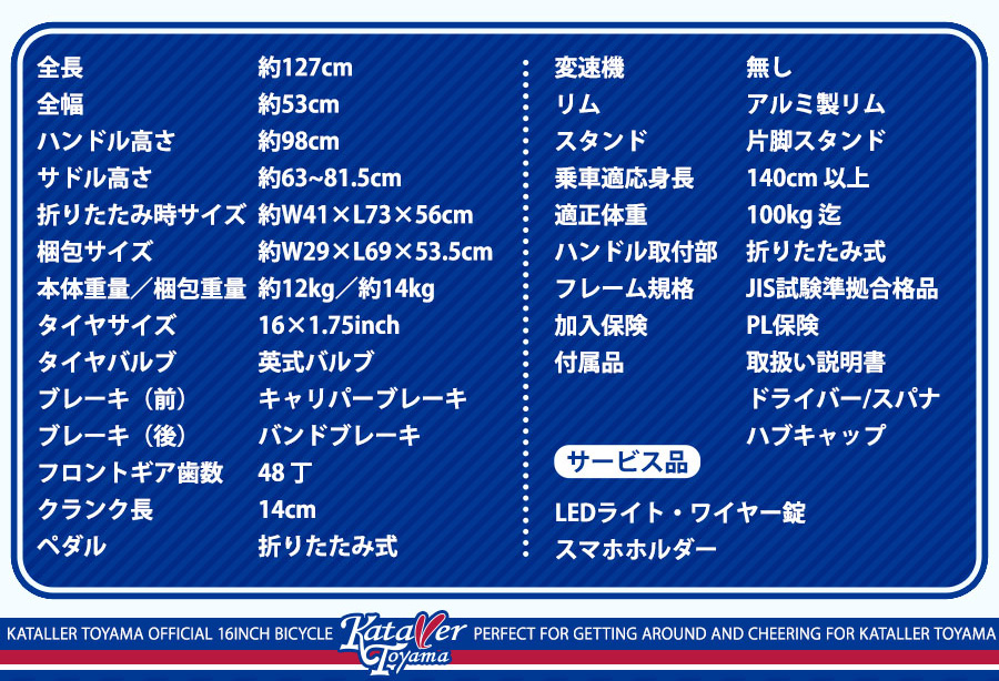 ※フロントライト・ワイヤーロック錠・スマホホルダーはサービス品になります。そのため保証の対象外とさせていただきます。※販売証明書が必要の方は別途ご依頼ください。■備考:折畳部二重ロック方式 他■タイヤサイズ:16インチ(英式バルブ)※販売証明書が必要の方は別途ご依頼ください。