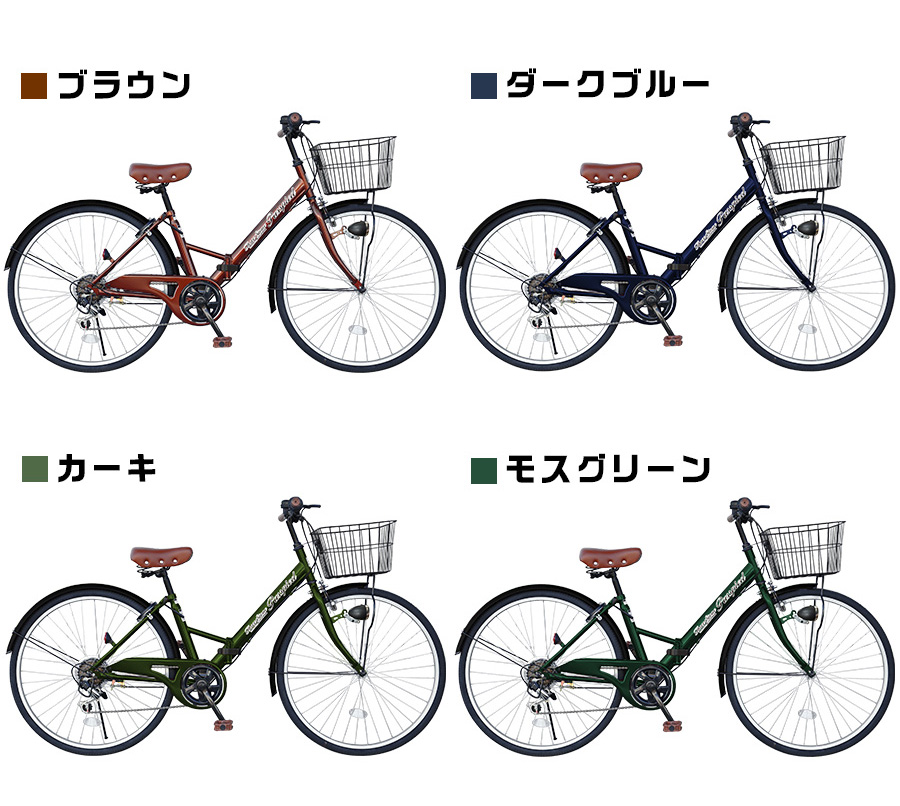 ・電池式LEDライト、サークル錠、チェーンカバー、前後フェンダー、片足スタンド装備済み