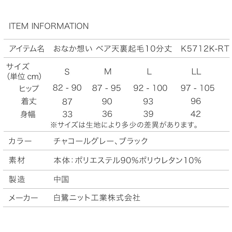 アイテム名:おなか想いベア天裏起毛10分丈 K5712K-R