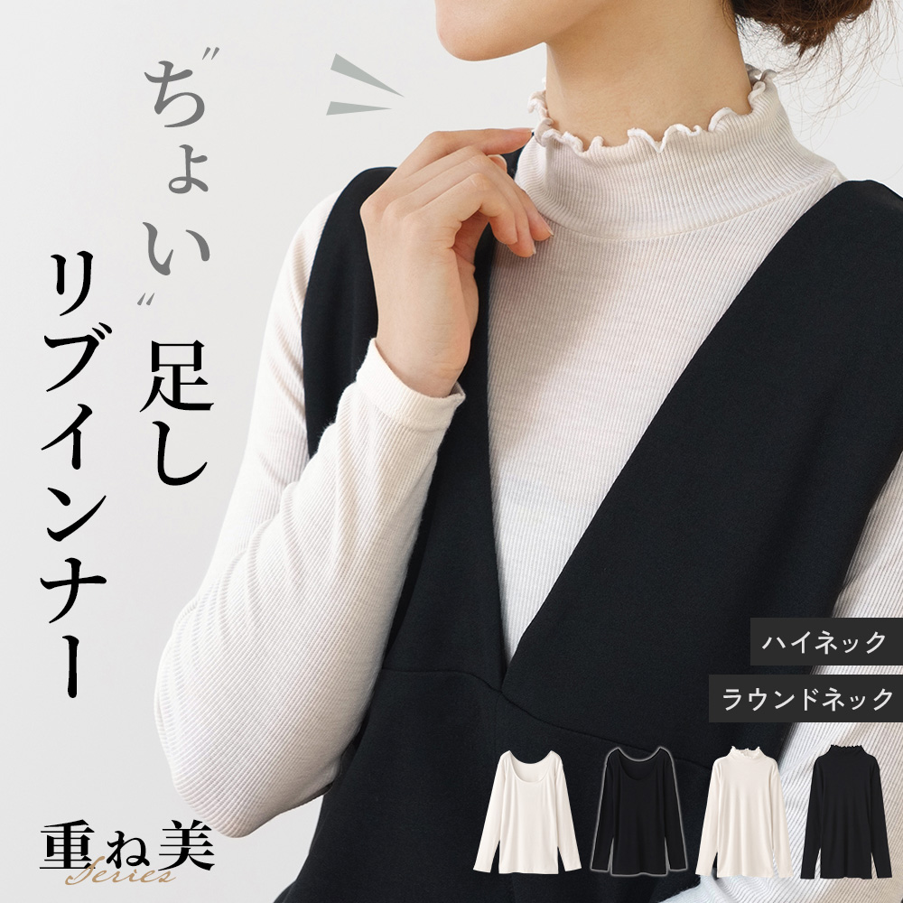 重ね美 ちょい足し リブインナー 長袖 ハイネック ラウンドネック メロウ フリル 重ね着 選べる2タイプ 薄手 ストレッチ 女性 婦人 下着 肌着 春 秋 冬