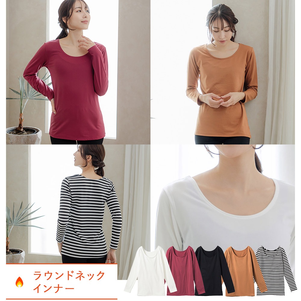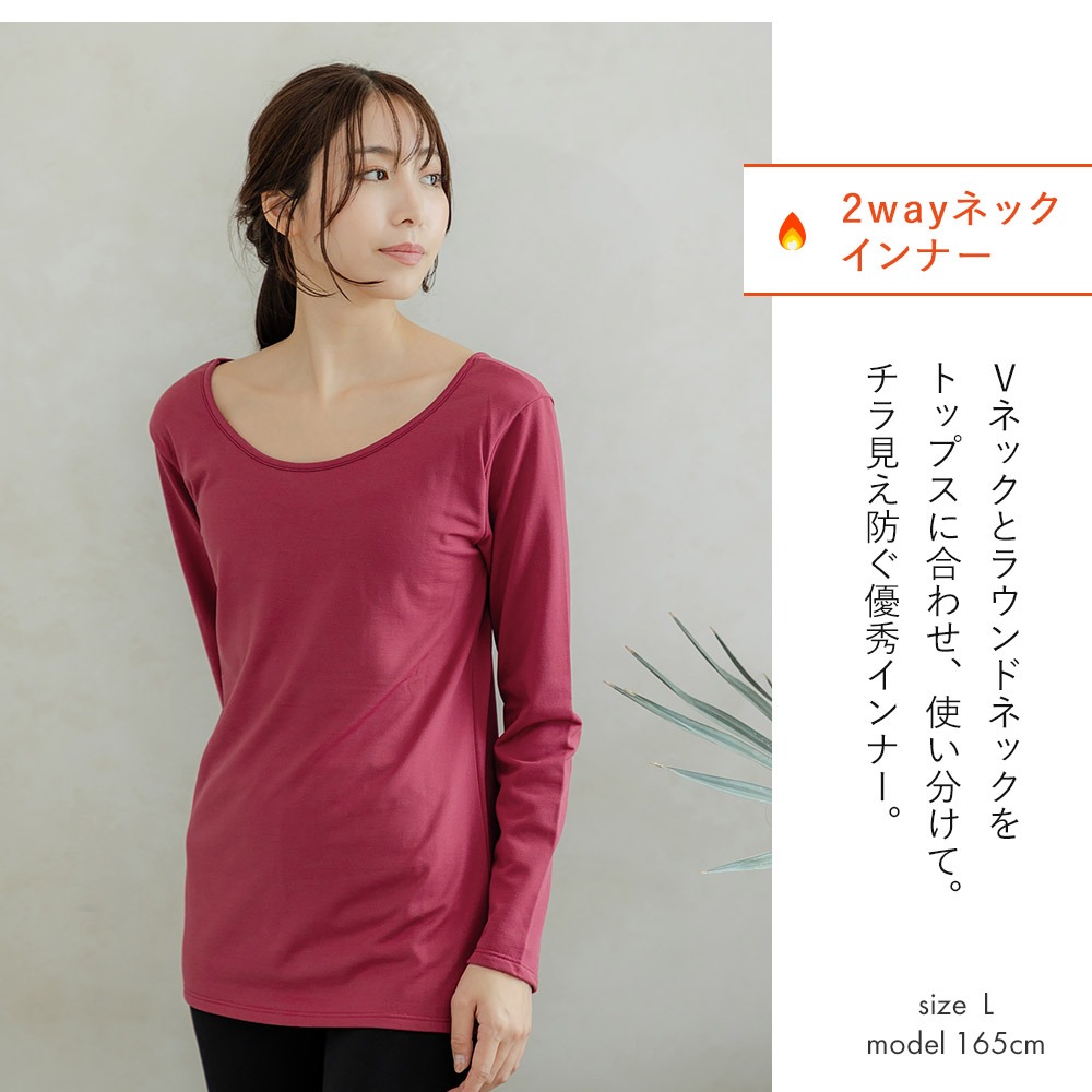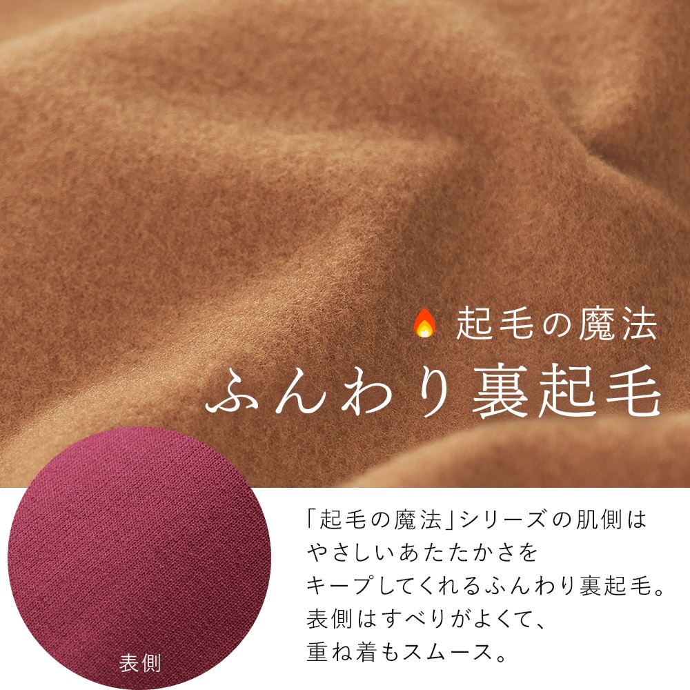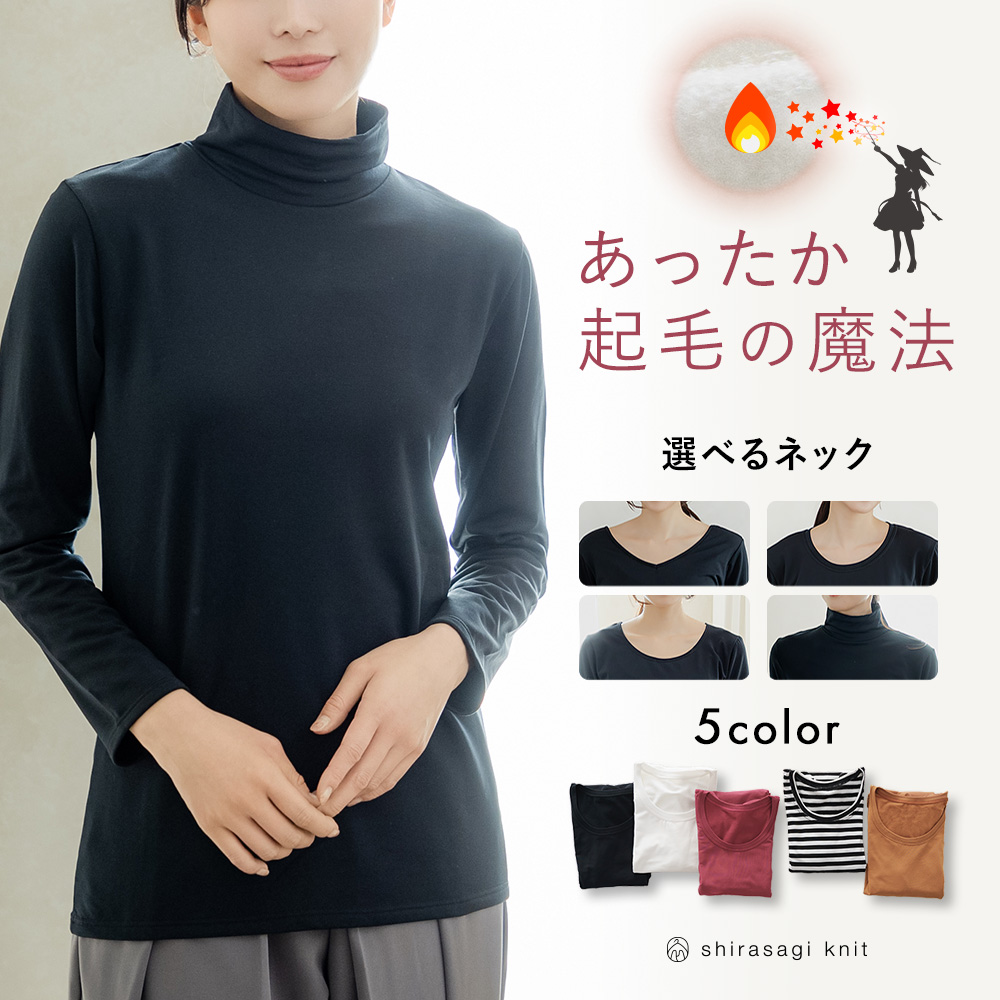 あったかインナー 起毛の魔法 裏起毛 長袖 レディース クルーネック ラウンドネック 2way 襟ぐり 広め ハイネック シャツ 秋冬 肌着 保温 防寒