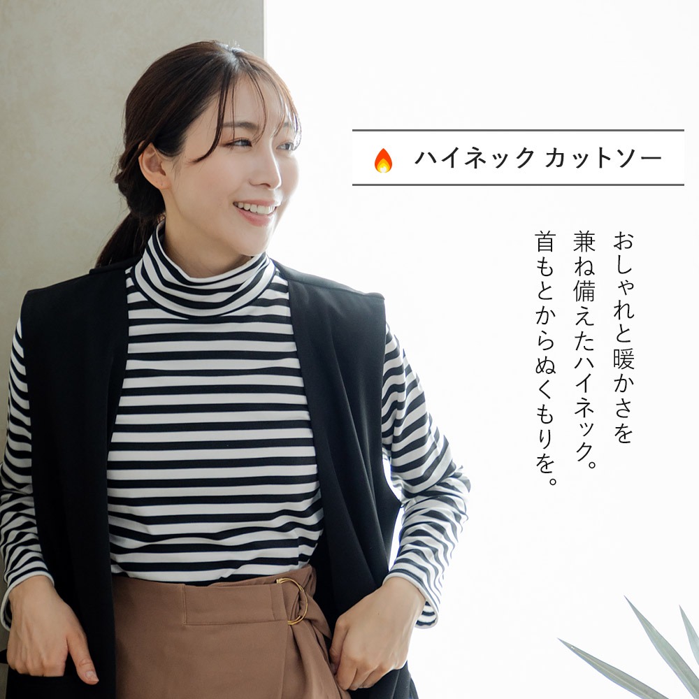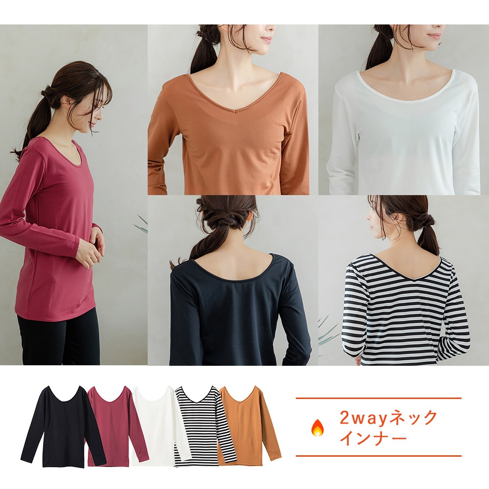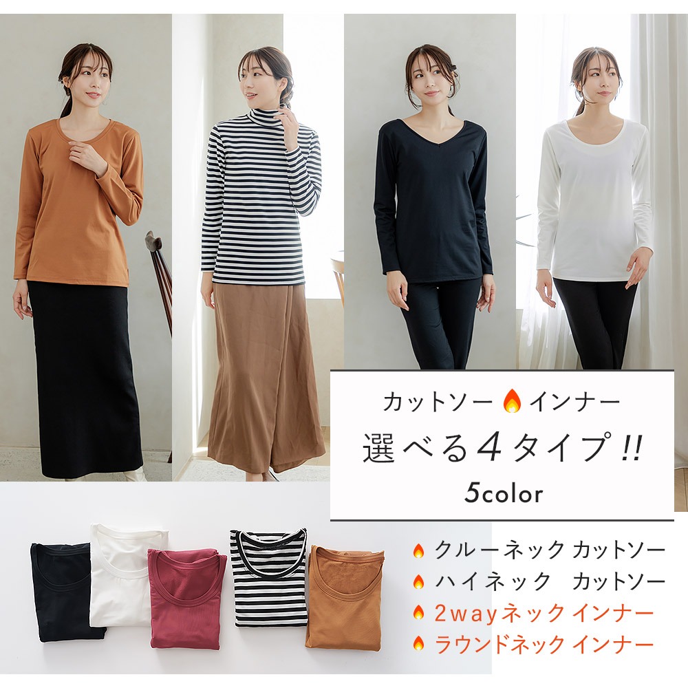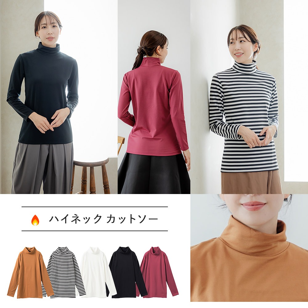 あったか 裏起毛 重ね着 カットソー レイヤード 暖かい レディース 女性 インナー ルームウェア 部屋着 にも 長袖 クルーネック ハイネック 2way ラウンド 婦人 送料無料 女性 秋冬 おしゃれ M L LL ブラック ホワイト ボーダー ブラウン オレンジ レッド K9390T-E 爆買