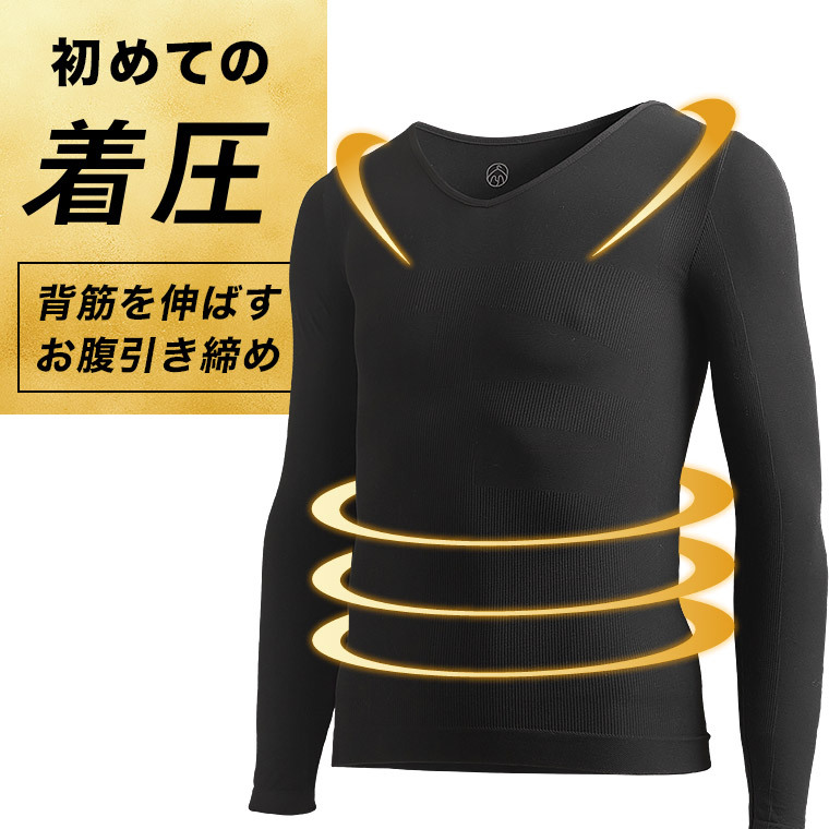 着圧 シャツ 長袖 Vネック メンズ 年間 加圧 インナー V首 トップス 補整下着 姿勢 引き締め 補正 猫背 コンプレッション ウエア