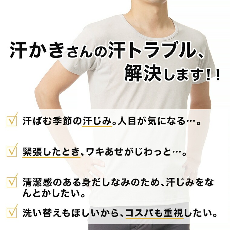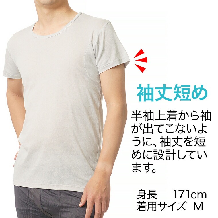 2枚セット 送料無料 汗取り インナー 半袖 シャツ 2分袖 丸首 メンズ 春夏 脇汗 素肌ドライ パッド付き ドライ 汗染み 防止 汗 対策 シャツ 綿混 L4790T-E