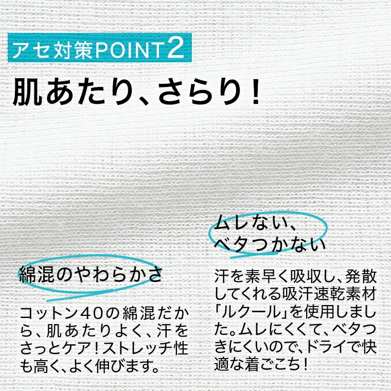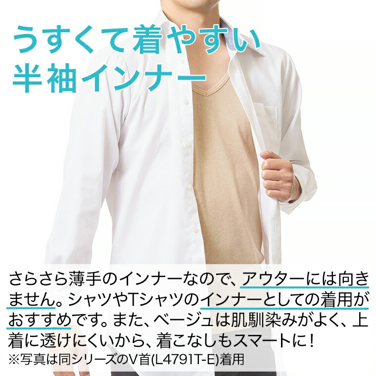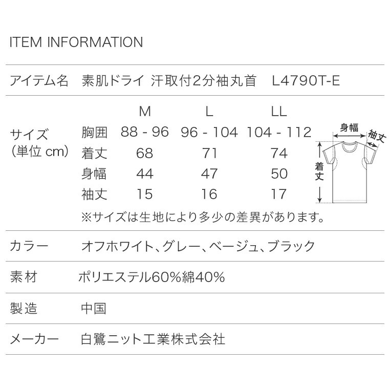 アイテム名:素肌ドライ 汗取付2分袖丸首 L4790T-E