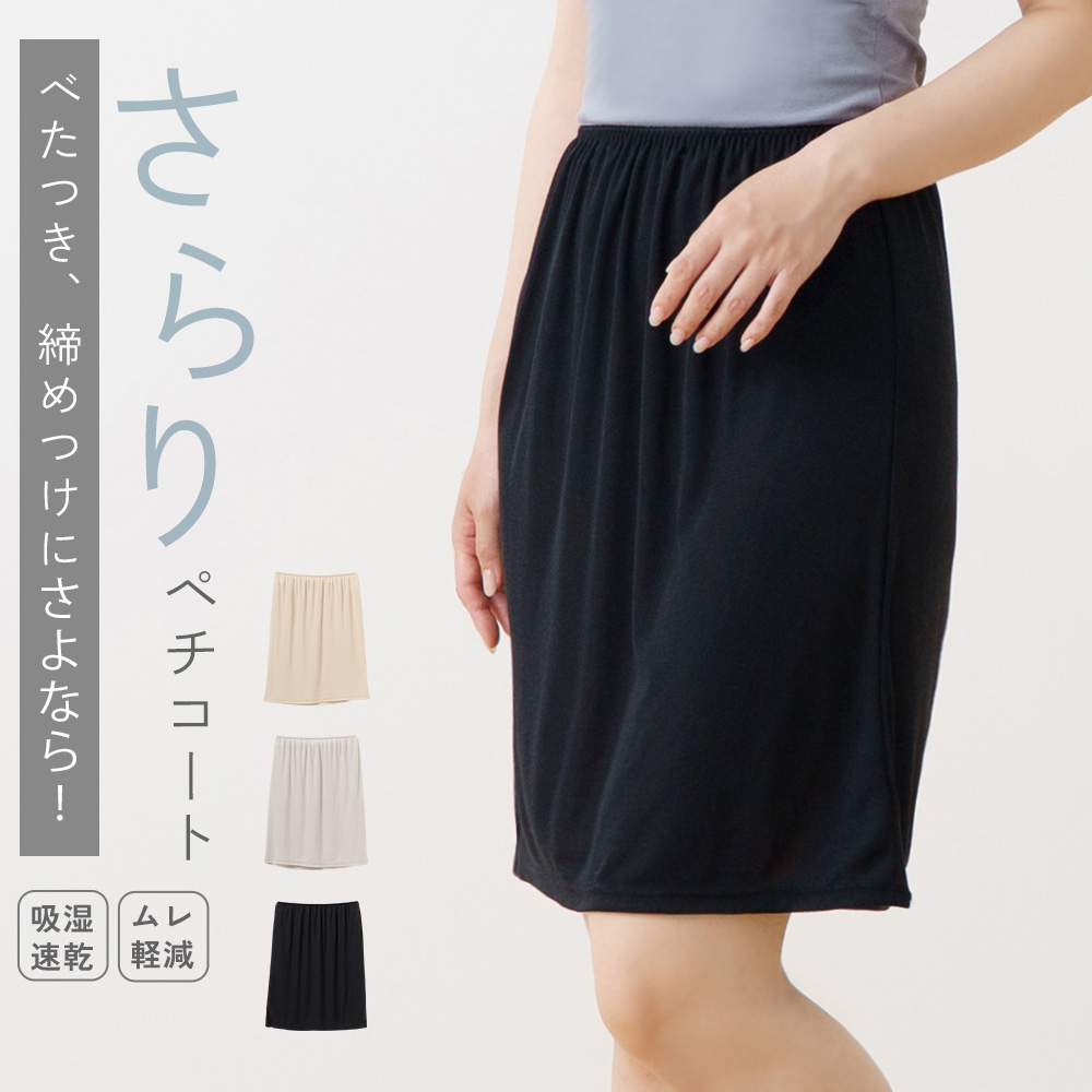 ムレ軽減 ペチコート レディース ペチスカート 膝丈 春夏 汗取り インナー 速乾 さらさら 汗染み 汗対策 透け防止 冷え対策 女性 肌着 婦人 L9925L-E