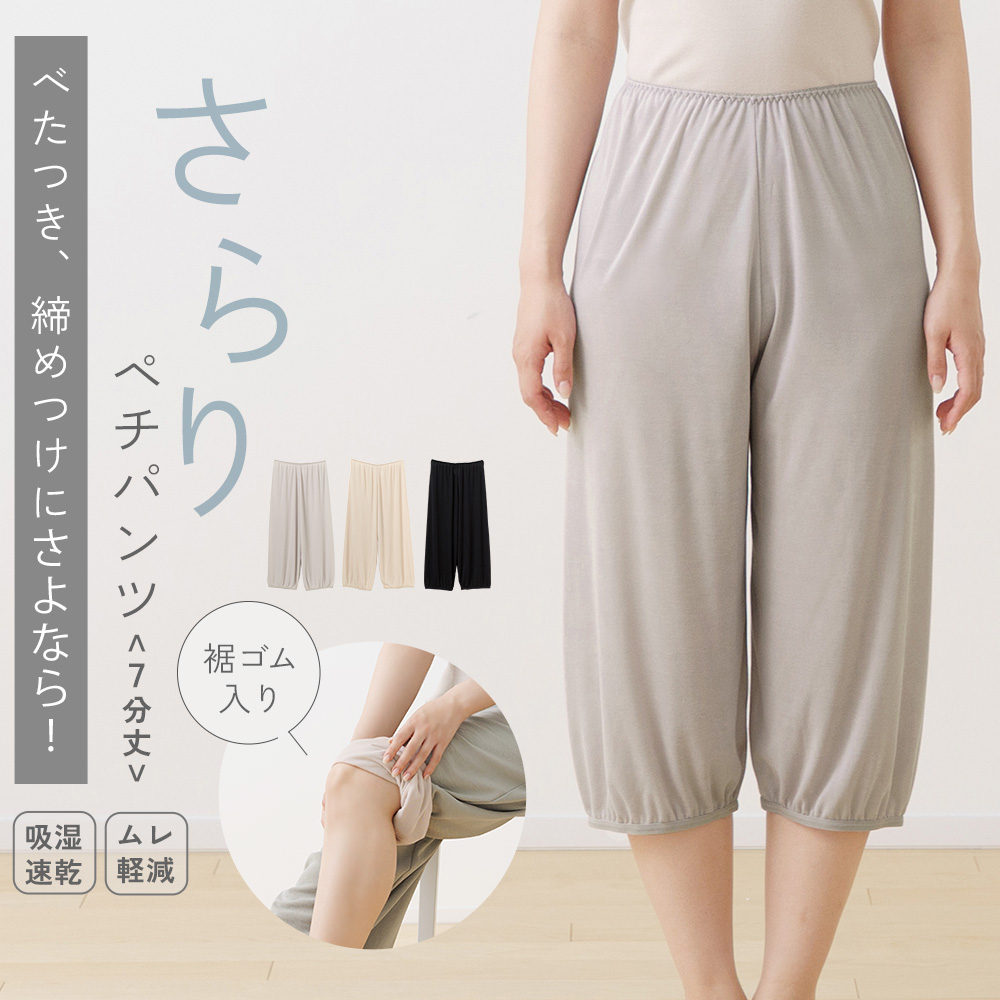 ムレ軽減 ペチパンツ 7分丈 裾ゴム ペチコート 汗染み 防止 レディース 春夏 ワイドパンツ用 インナーパンツ 汗 対策 透け防止 冷え対策 女性 肌着 婦人 下着