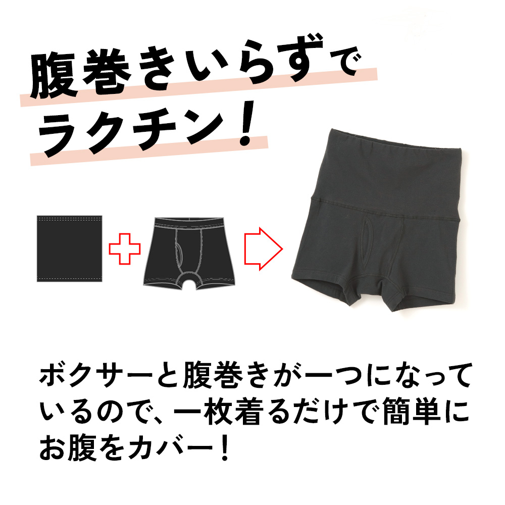 おなかポンポン ボクサー 腹巻き付き 一体型 インナー メンズ 春夏秋冬 パンツ 吸汗速乾 ドライ綿 冷房対策 保温性 前開き 男性 肌着 送料無料 25SS M4515L-E