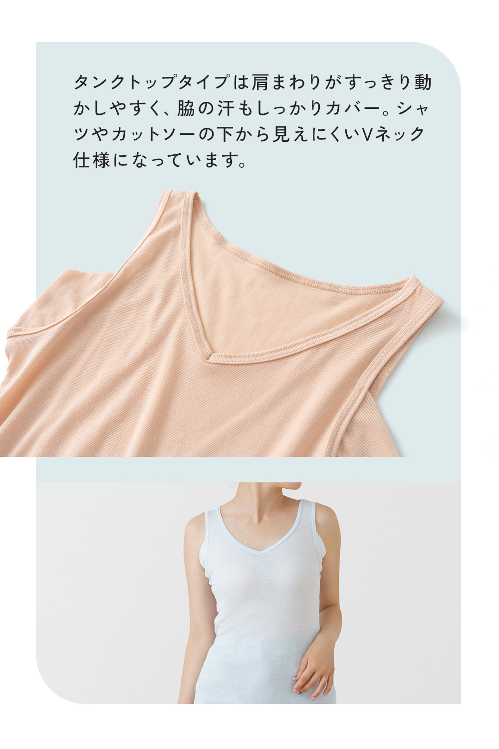 汗取りインナー 素肌ドライ タンクトップ 脇汗 パッド付き レディース 春 夏 汗染み ノースリーブ 綿混 吸汗速乾 薄手 Vネック