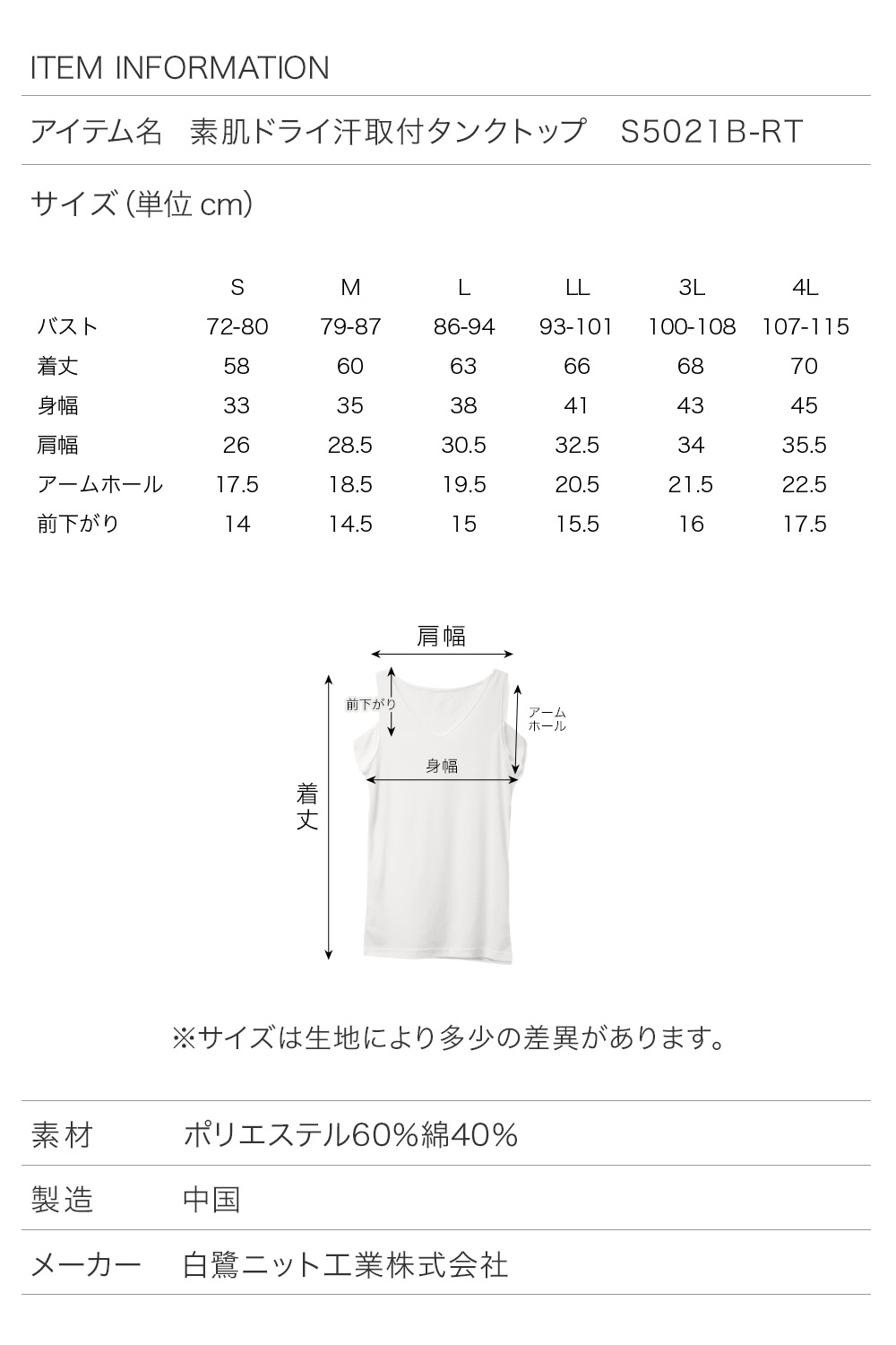 アイテム名: 素肌ドライ汗取付タンクトップ S5021B-RT