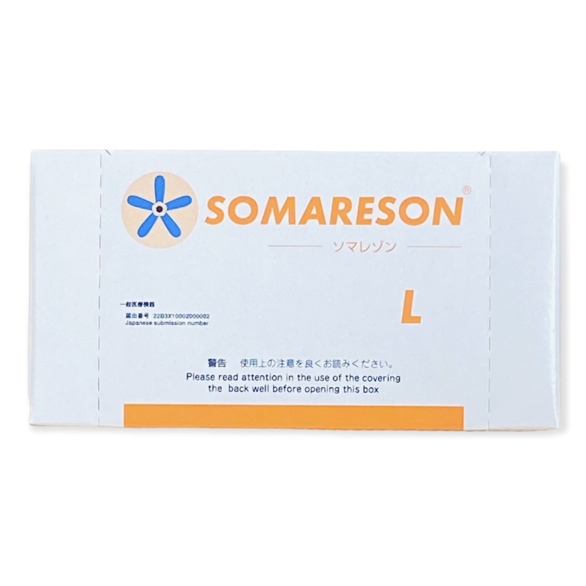 刺さない鍼(はり)でやさしくセルフケアツボへのポイント刺激でコリにアプローチ特殊なプラスチック樹脂で形成された微細な突起『マイクロコーン』。このマイクロコーンのついた絆創膏をツボに貼ることで、皮膚表面へ刺激を送り続けてケアする医療機器です。体を動かすことなどで生じるわずかな振動や圧迫がマイクロコーンを振動。やさしい刺激が生じ、同時に繊細な刺激を皮膚神経へと伝達し痛みやコリにしっかりアプローチします。ソマレゾンの特徴ソマレゾンのゴム状樹脂はやや柔らかく、プラスチック状樹脂のソマセプトに比べてやさしい刺激です。「揉みほぐすと楽になる痛み」「温まると楽になる痛み」など、全体的に漫然とつらい痛みにお使いください。マイクロコーンによるケアの特徴■安全で使いやすいマイクロコーンの高さは非常に微細で皮膚を傷つけないため利用しやすく、貼付することによる痛みはほとんど感じられません。安全で取り扱いやすい医療機器として設計されています。【ご使用方法】貼る前に、部位周辺の汗などをよく拭いてください。痛みやコリを感じる部位をかるく指で押します。その中でも、より痛いと感じる点や、気持ち良いと感じる箇所に乗せるように貼ってください。※絆創膏はカートリッジからゆっくりと取ってください。貼付後は指などでマイクロコーンを皮膚に押し付けないよう注意してください。※指で押し付ける事でマイクロコーンが曲がり、本来の性能を発揮できなくなります。〜SOMANIKS(ソマニクス)〜痛みを緩和する医療器具ブランド『SOMANIKS(ソマニクス)』。ソマニクスは、皮膚と神経科学に基づいて開発された、痛みを緩和する医療機器シリーズです。これまで培った高度な製造技術やノウハウをベースに、皮膚科学・神経伝達など最新の研究を見据え、「Catch The Voice Of SKIN」をコンセプトに患者さんの“痛みの軽減”に取り組んでいます。■原料マイクロコーン部:エラストマー樹脂カートリッジ部:樹脂■サイズLサイズ(絆創膏部:17×17mm/マイクロコーン部:直径7mm)■マイクロコーン数Lサイズ(177本)■一般医療機器届出番号:22B3X10002000002ご使用の前に商品同封の添付文書(説明書)をよくお読みください。貼り付け時は、強く押しつけず、皮ふに置くように貼り付けてください(マイクロコーン部が曲がった状態で貼り付けた場合、本来の性能を発揮できません)。長時間のご使用はかぶれの原因になります(最長12時間以内のご使用を推奨しています)。かぶれやかゆみ等を感じたときは、使用を直ちに中止してください。注意事項お肌に異常が生じていないかよく注意してご使用ください。お肌に異常がある時、またはお肌に合わない時は、ご使用をおやめください。体質に合わない場合は、利用を中止し医師に相談して下さい。直射日光の当たる場所、極端に高温や低温になる場所には保管しないでください。乳幼児の手の届かないところに保管してください。効果・効能については、個人差がございます。