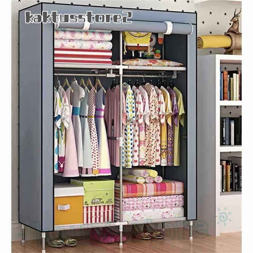 ワードローブ大容量カバー付きクローゼットハンガーラック3つの引き出し整理タンス衣類収納組み立て式工具不要(グレー)