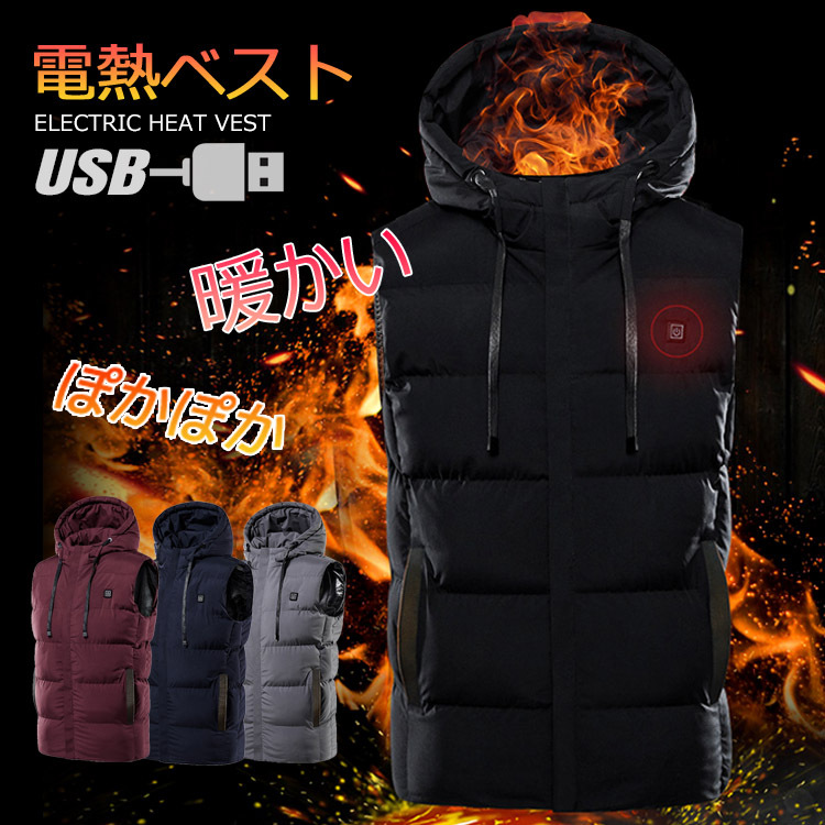 電熱ベスト 発熱ベスト USB 給電 電熱 ベスト 電熱ウェア 電熱ジャケット 加熱ベスト 暖房服 バイク 防寒 スキー 釣り アウトドア スポーツ 水洗い可能 男女兼用