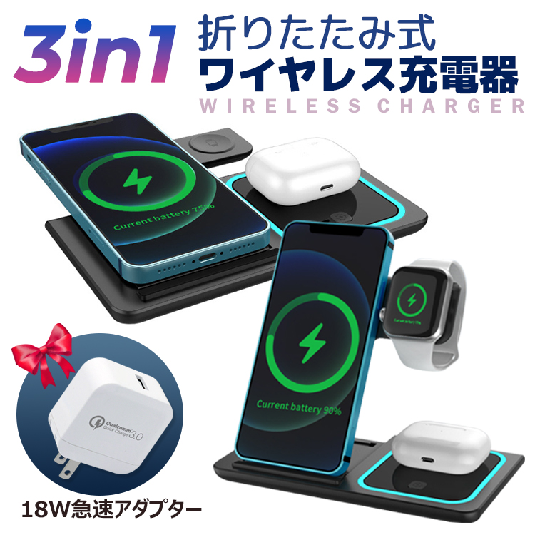 ワイヤレス充電器 3in1 iphone16 折り畳み式 ワイヤレス 充電器 3in1 無線充電器 iPhone Android アンドロイド ワイヤレスチャージャー 充電スタンド Qi急速充電