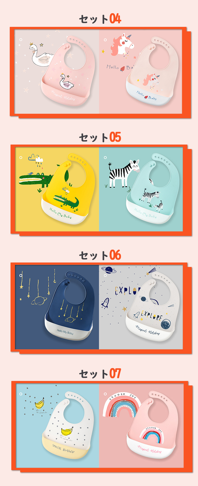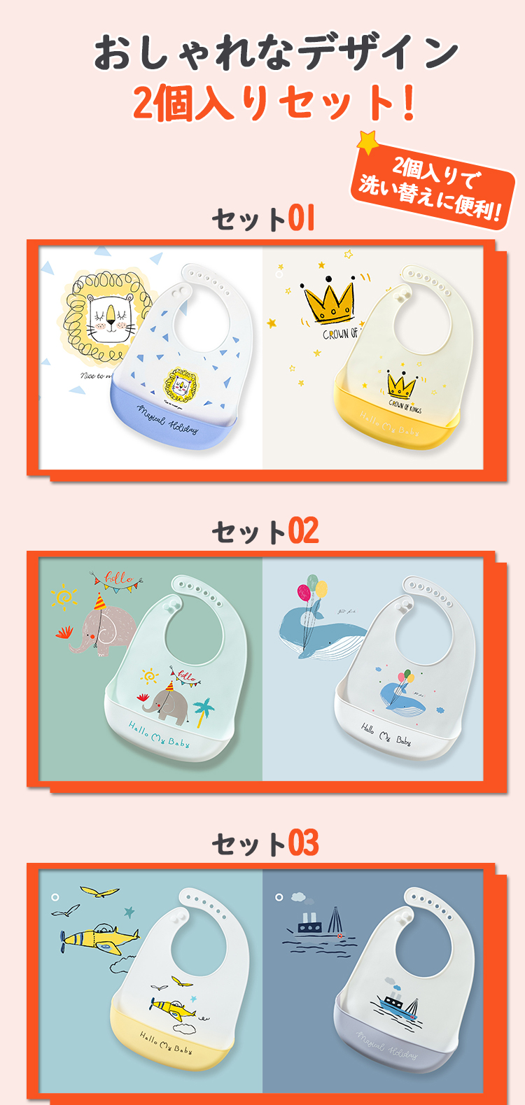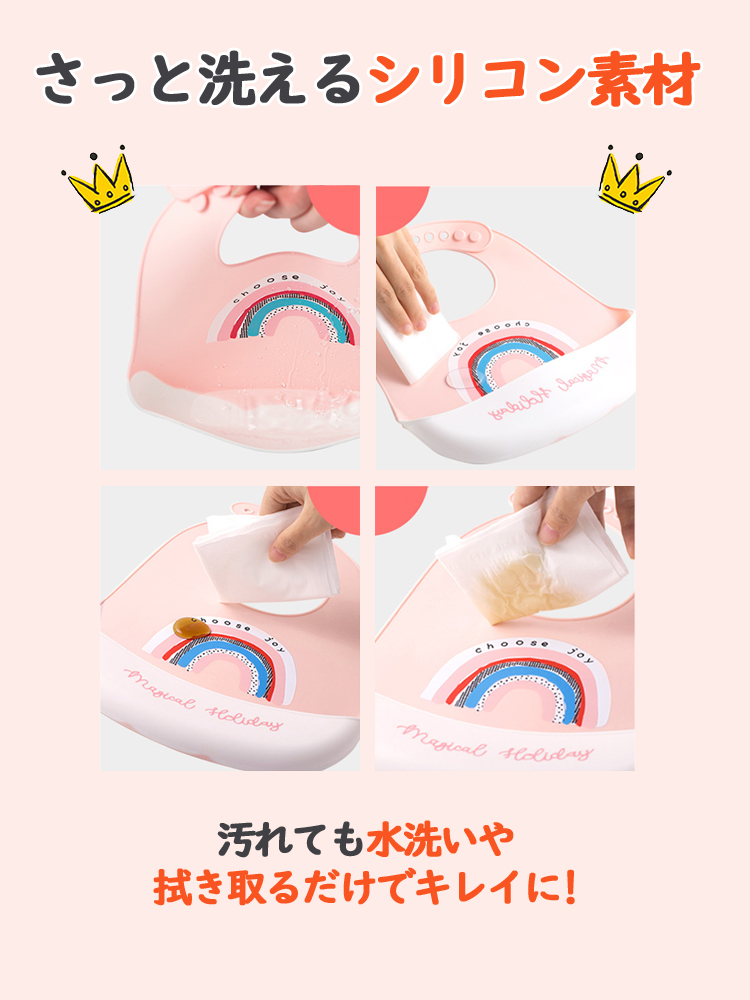 お食事エプロン シリコン 2枚セット ベビー エプロン 食事用 保育園 防水 男の子 女の子 赤ちゃん 子供用 幼児 ベビー用品 シリコンビブ 離乳食 おしゃれ ビブ