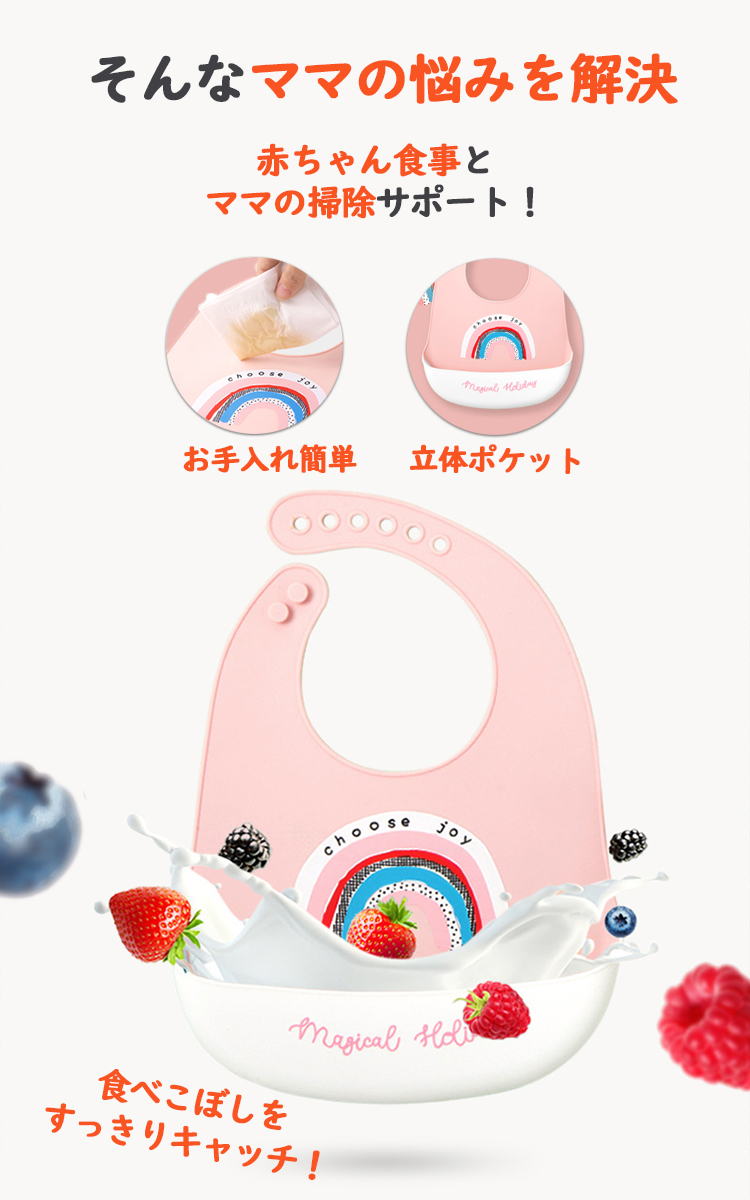 - ポケットで食べこぼしをすっきりキャッチ