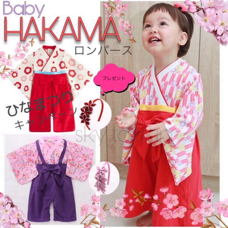 ♢♢かわいい赤ちゃん用の袴ロンパース♢♢女の子用サイズ70cm、80cm、ご好評頂き90cm入荷、ご用意しました!