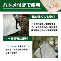 ハトメが4箇所付いており、ペグでしっかり固定することができます。