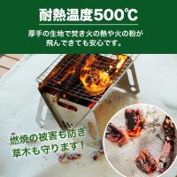 焚火台やストーブ、コンロで使用する炭や薪の火から地面や芝生をしっかり保護します。