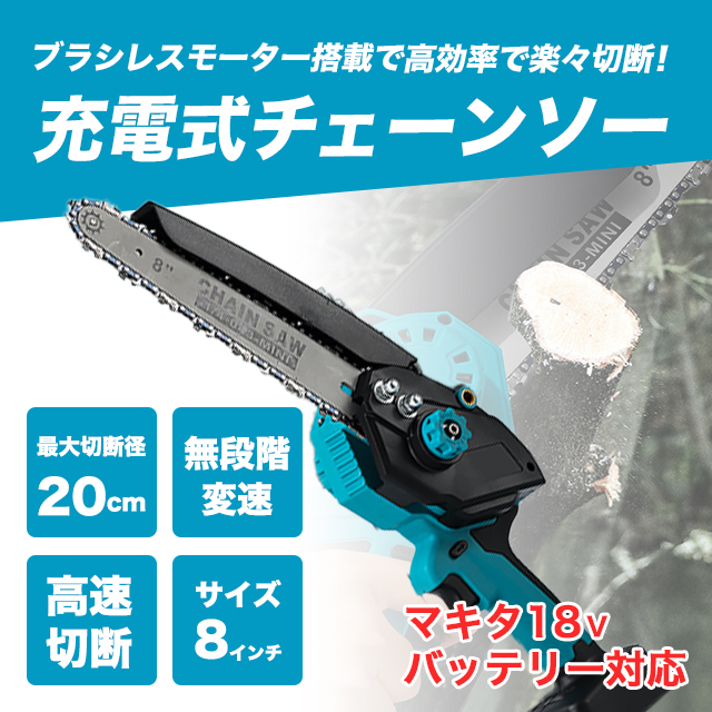 マキタ 互換 充電式 チェーンソー 8インチ ブラシレス 小型 オイル 給油 コードレス 電動 のこぎり 家庭用 18V 14.4V バッテリー対応