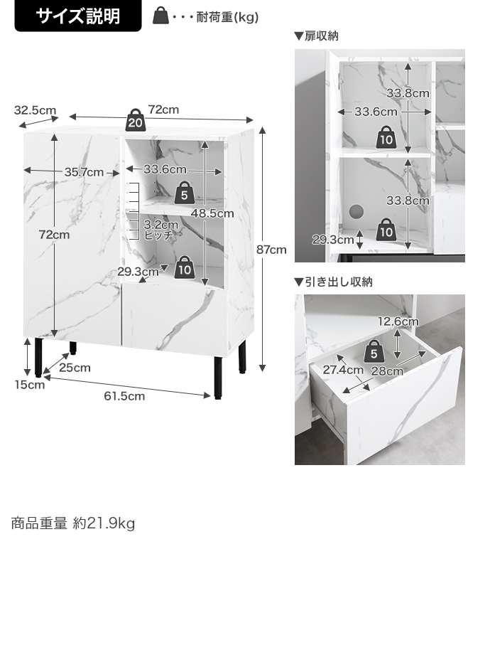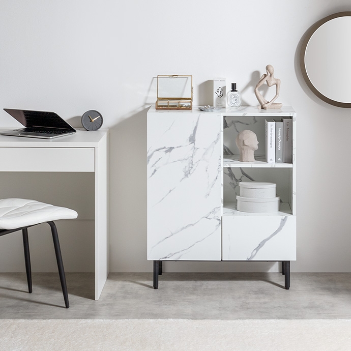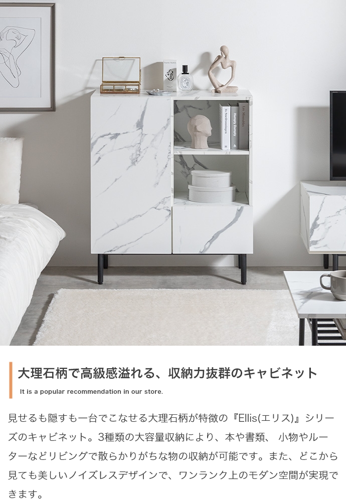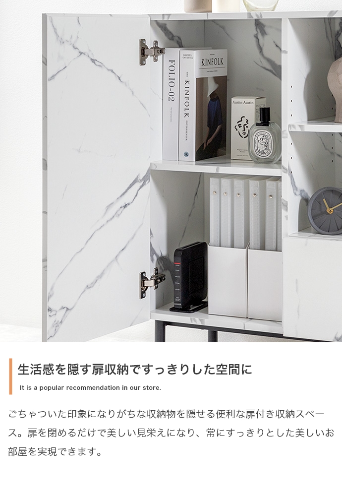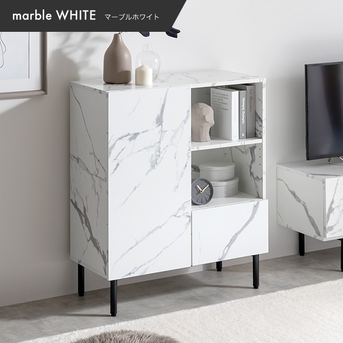 キャビネット おしゃれ 大理石柄 幅72cm スリム リビング収納 収納棚 本棚 サイドボード チェスト リビングチェスト 韓国インテリア